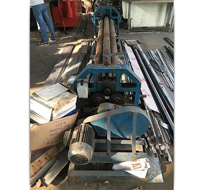 對稱式卷板機(jī)上輥在兩下輥中央對稱位置通過液壓缸內(nèi)的液壓油作用于活塞作垂直升降運(yùn)動,通過主減速機(jī)的末級齒輪帶動兩下輥齒輪嚙合作旋轉(zhuǎn)運(yùn)動,為卷制板材提供扭矩。卷板機(jī)規(guī)格平整的塑性金屬板通過卷板機(jī)的三根工作輥(二根下輥、一根上輥)之間,借助上輥的下壓及下輥的旋轉(zhuǎn)運(yùn)動,使金屬板經(jīng)過多道次連續(xù)彎曲(內(nèi)層壓縮變形,中層不變,外層拉伸變形),產(chǎn)生永久性的塑性變形,卷制成所需要的圓筒、錐筒或它們的一部分。